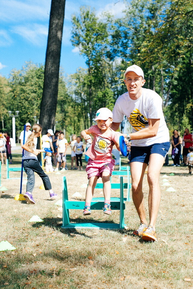 Пока родители выполняли пробежку, с ребятами занимались профессиональные тренеры по легкой атлетике во главе с Александром Бут-Гусаимом.