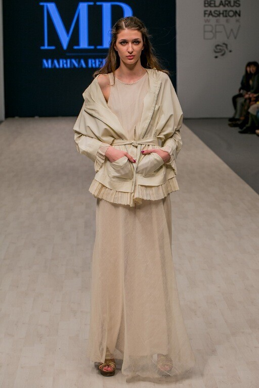 Марина Райман — дизайнер, создающий образы для светских дам, гостий приемов и раутов. Представленная на минском подиуме коллекция вдохновлена встречами after-golf, где леди выбирают что-то легкое, непринужденное, однако не лишенное изящества и шика. Выбранные ткани в основном искусственные, однако, все они выполнены по новым технологиям, которые позволяют пропускать воздух, а коже «дышать».