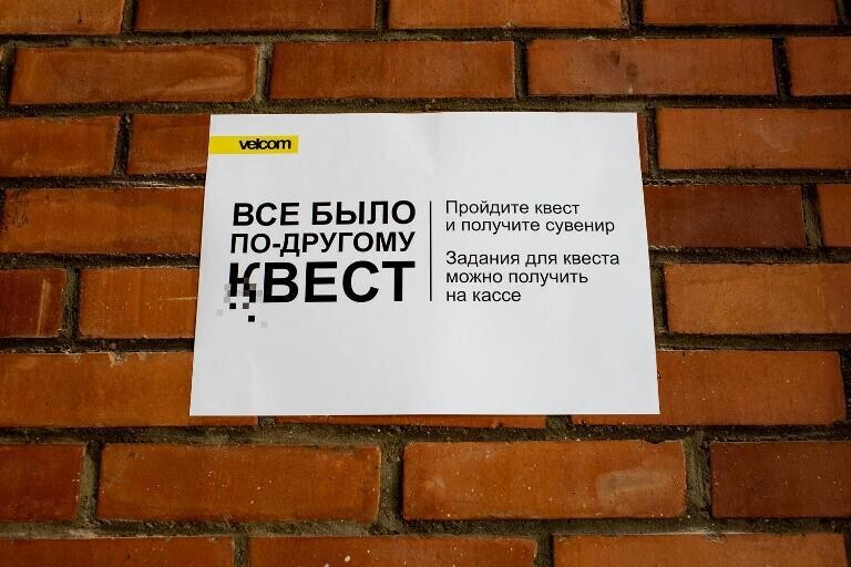 В Национальном центре современных искусств при поддержке компании velcom открылся квест по выставке «Все было по-другому». Чтобы стать его участником, при покупке билета нужно получить специальный флаер, затем ознакомиться с экспозицией, правильно ответить на 8 вопросов и угадать кодовое слово. Заполненную листовку необходимо отдать сотруднику НЦСИ, который проверит ответы и вручит приятный сувенир.