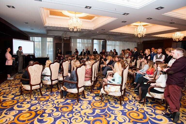 , атмосфера во время награждения была семейной, домашней и разбавлялась отличной порцией юмора ведущего церемонии Дмитрия Новика. В зале вместе с участниками Премии RBWPA присутствовали и приглашенные гости: партнеры Премии RBWPA, топовые event-агентства, распорядители, ведущие, артисты, редакторы свадебных журналов.