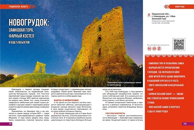Кроме того, авторы предоставили максимально полную информацию об инфраструктуре туристических объектов, что поможет туристам провести свое путешествие в максимальном комфорте. С помощью QR-технологии на страницах путеводителя закодированы географические координаты, что упрощает их ввод на смартфоне при использовании навигационных систем. И это далеко не все «фишки» первой части путеводителя.