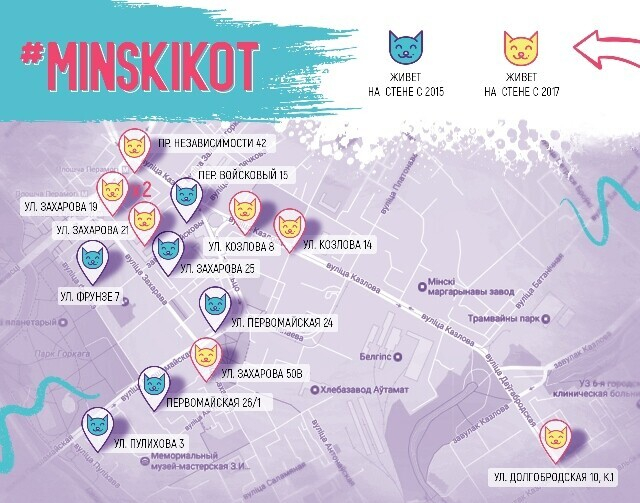 Городской стрит-арт проект #Minskikot выпустил карту с героями известного граффити