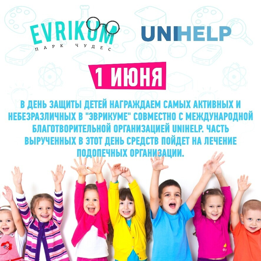 1 июня: Благотворительный праздник «Детство для всех» в парке чудес «Эврикум» совместно с Международной благотворительной организацией UNIHELP