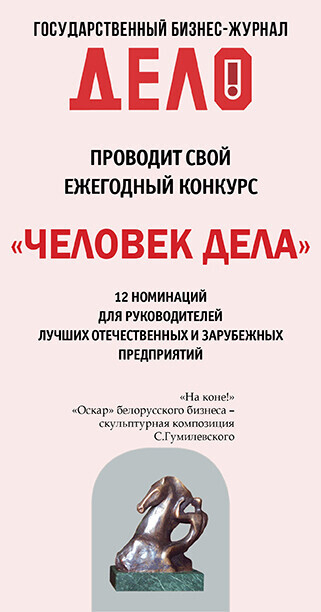 Конкурс учрежден редакцией первого белорусского бизнес-журнала «Дело». В этом году, как всегда, в начале июля, в день рождения журнала «Дело», состоится подведение итогов нашего традиционного конкурса и награждение дипломами и призами редакции 12 руководителей лучших отечественных и зарубежных предприятий, работающих на белорусском рынке.