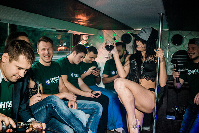 Мальчишник распечатали в 06:30 утра: двухэтажный автобус-лимузин стартовал из Минска под качающие музыкальные сеты DJ Mikis. В банде – 10 отпетых парней-слушателей Нового радио, выигравших шальную поездку в режиме all inclusive.