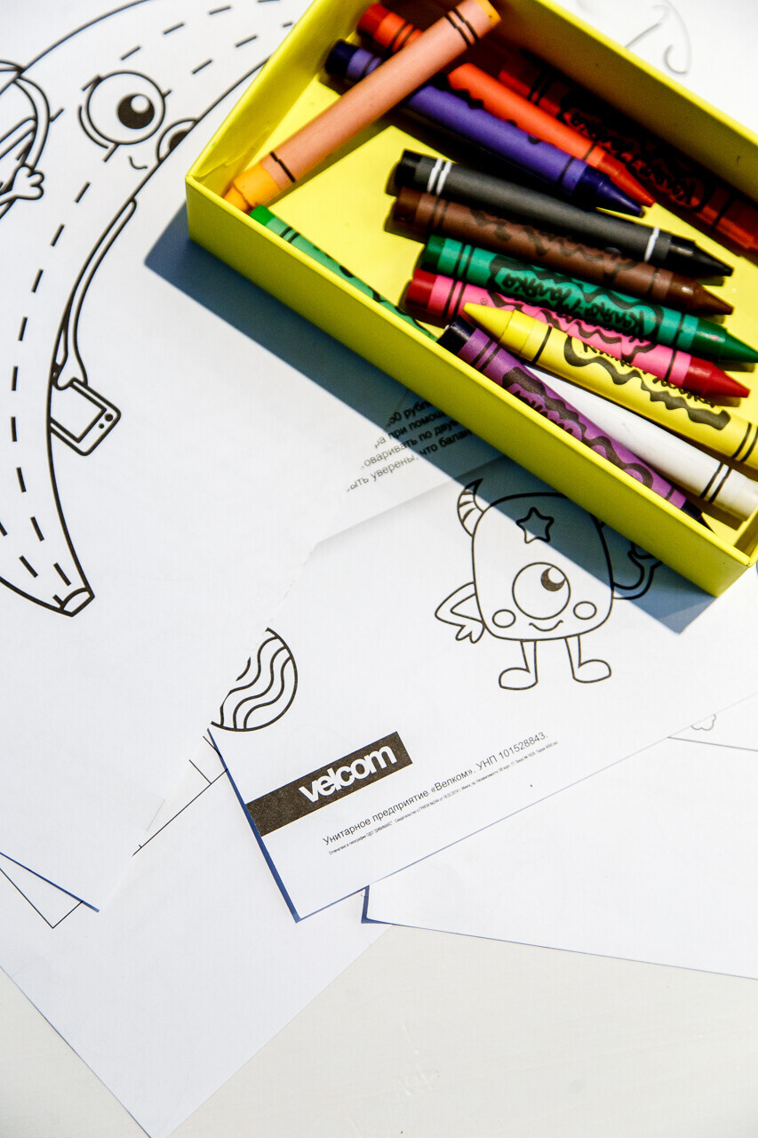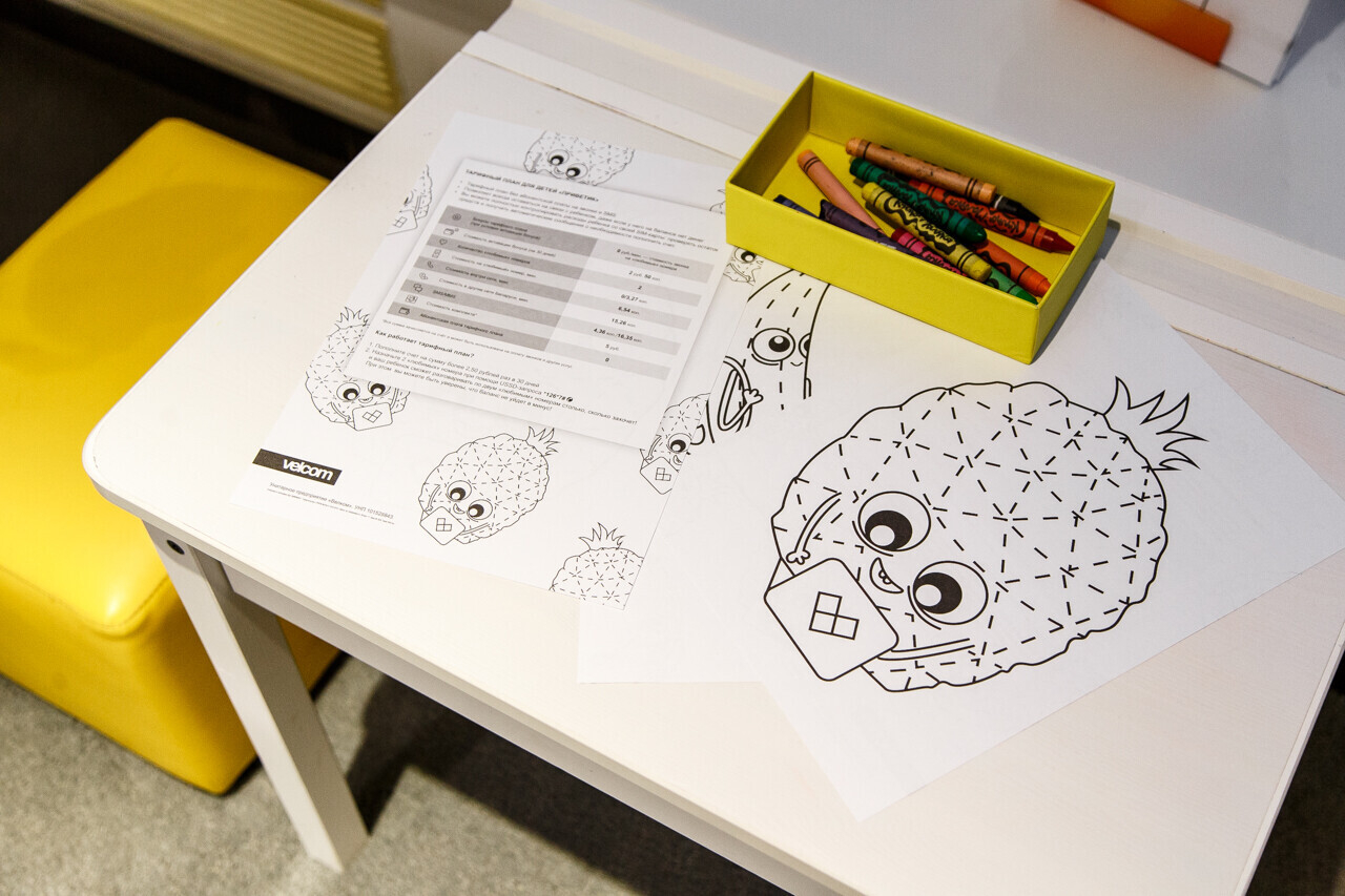 Компания velcom открыла в своих фирменных центрах в Минске детские творческие уголки. Теперь посетители центров продаж и обслуживания могут занять детей рисованием, пока выбирают себе телефон или получают консультацию по тарифу, рассказали в пресс-службе компании.