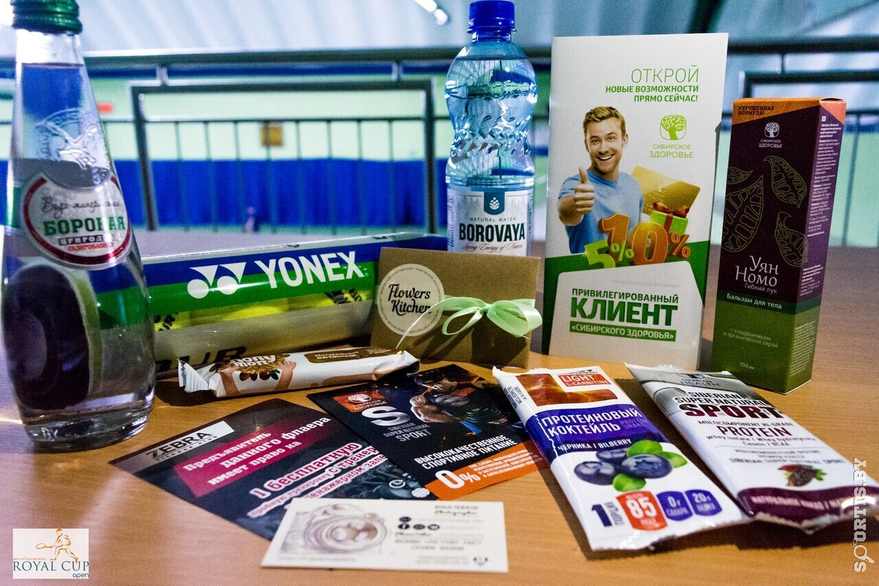 Благодарим за содействие, поддержку в продвижении тенниса в Беларуси. А также за помощь в организации брендовых турниров серии Royal Cup Open, ну и конечно, за нереально классные призы, подарки и сюрпризы для участников турнира. Каждый участник турнира получил полезные подарки от наших партнеров.