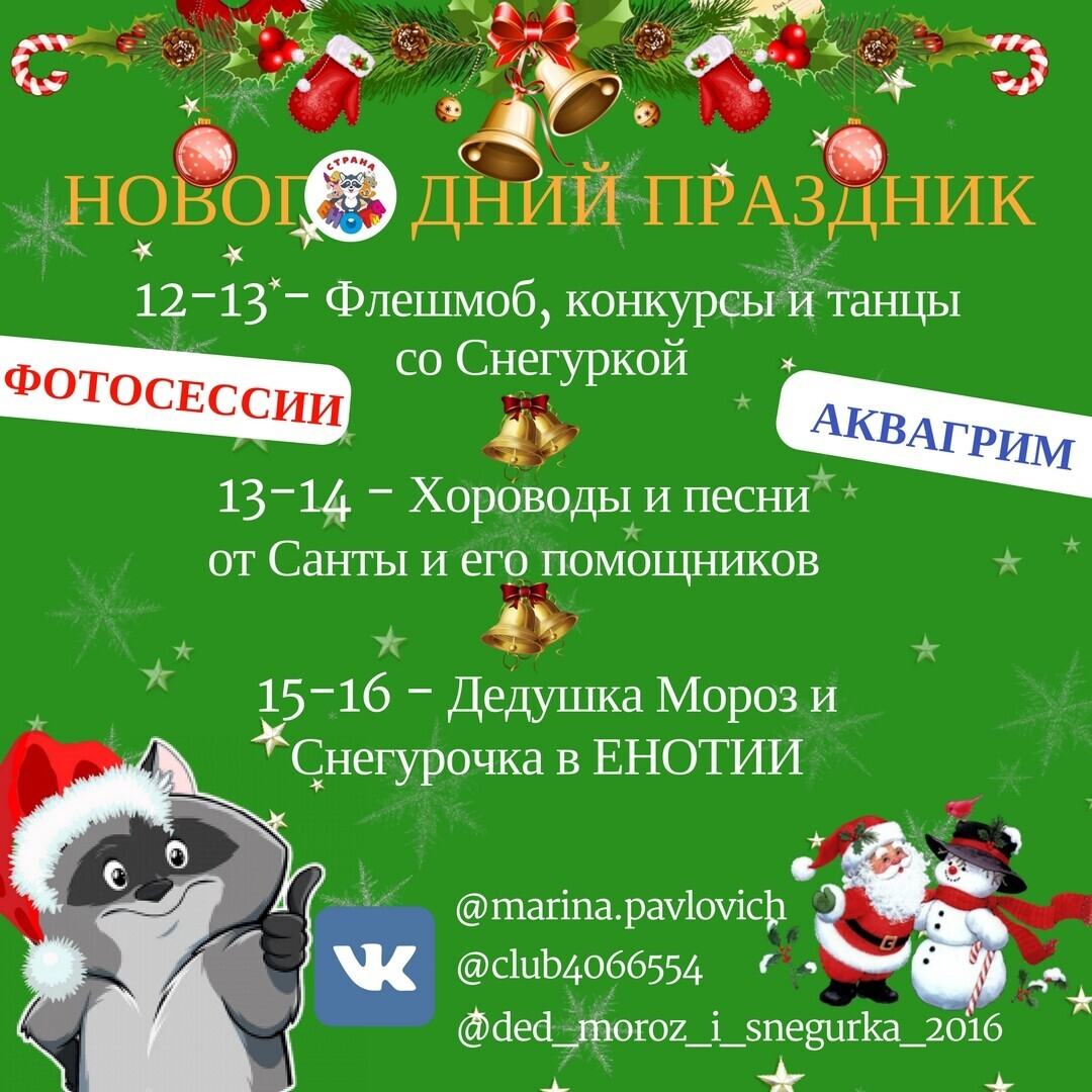 Шоу Дедов Морозов, театральные выступления Снегурочек и её друзей, фотосессии с новогодними героями и нашими животными.