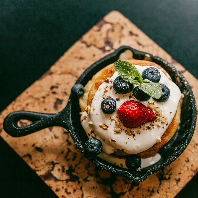 -пышные блинчики со свежими ягодами в сковороде, 240гр - 7.00 руб.
