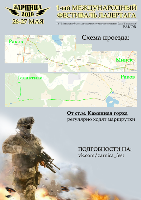 Крупнейший в Беларуси фестиваль лазертага «Зарница 2018» собирает друзей 26-27 мая 2018 года на базе отдыха «Галактика» в 5 км от Ракова!