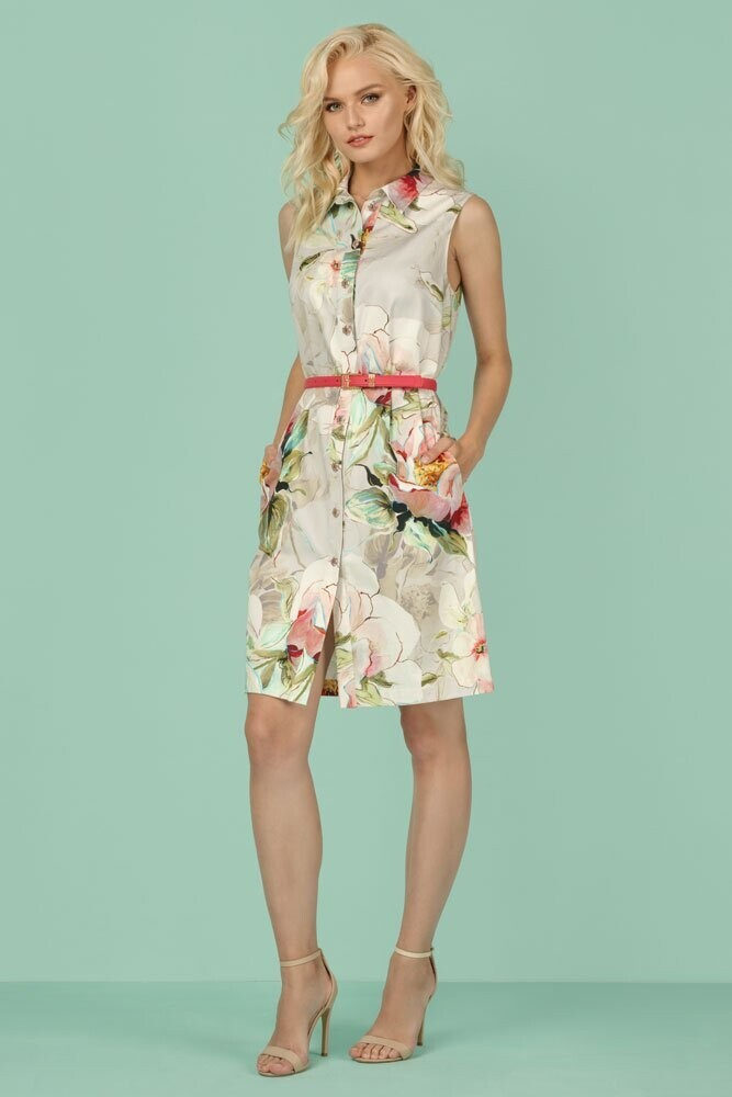 Преимущества этого платья – трендовый цветочный принт, удобные карманы и элегантный воротничок. Идеальный вариант для утреннего совещания и вечернего сеанса в кино.