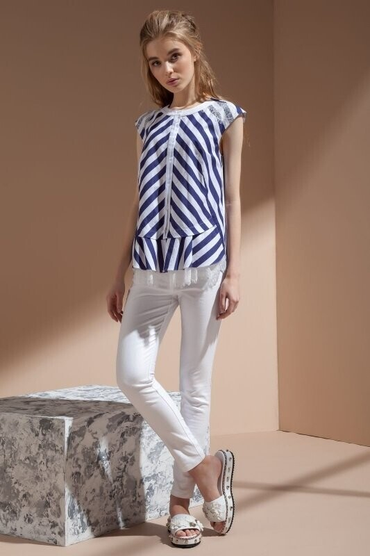 Блуза с рукавами-буфами и брюки в вертикальную полоску – все по законам жанра сезона весна-лето/18.