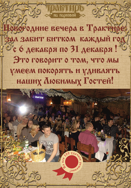 Вот уже более 20 лет самый известный ресторан славянской кухни Трактиръ на Парковой создает праздник для Гостей в центре города!