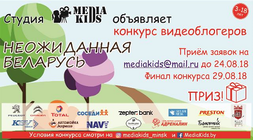 Проводится детский конкурс видеоблогеров "Неожиданная Беларусь". Принять участие может каждый ребёнок, являющийся гражданином Республики Беларусь. Возраст 3-18 лет.