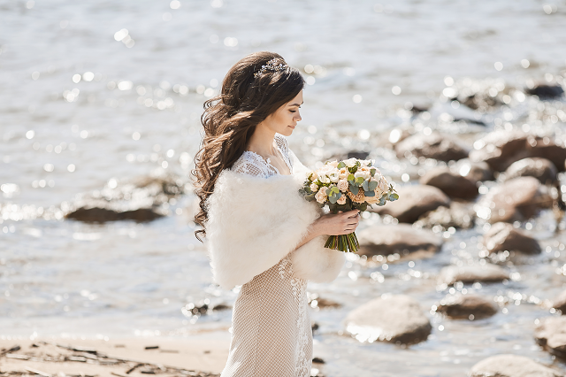 Наш совет, чтобы не смотреться совсем по-зимнему, выбирайте вместо шубки вариант манто либо мехового болеро. Это даст вам возможность согреться, но не закрыть полностью верх вашего платья. К тому же всегда можно сбросить манто на пару фотографий.