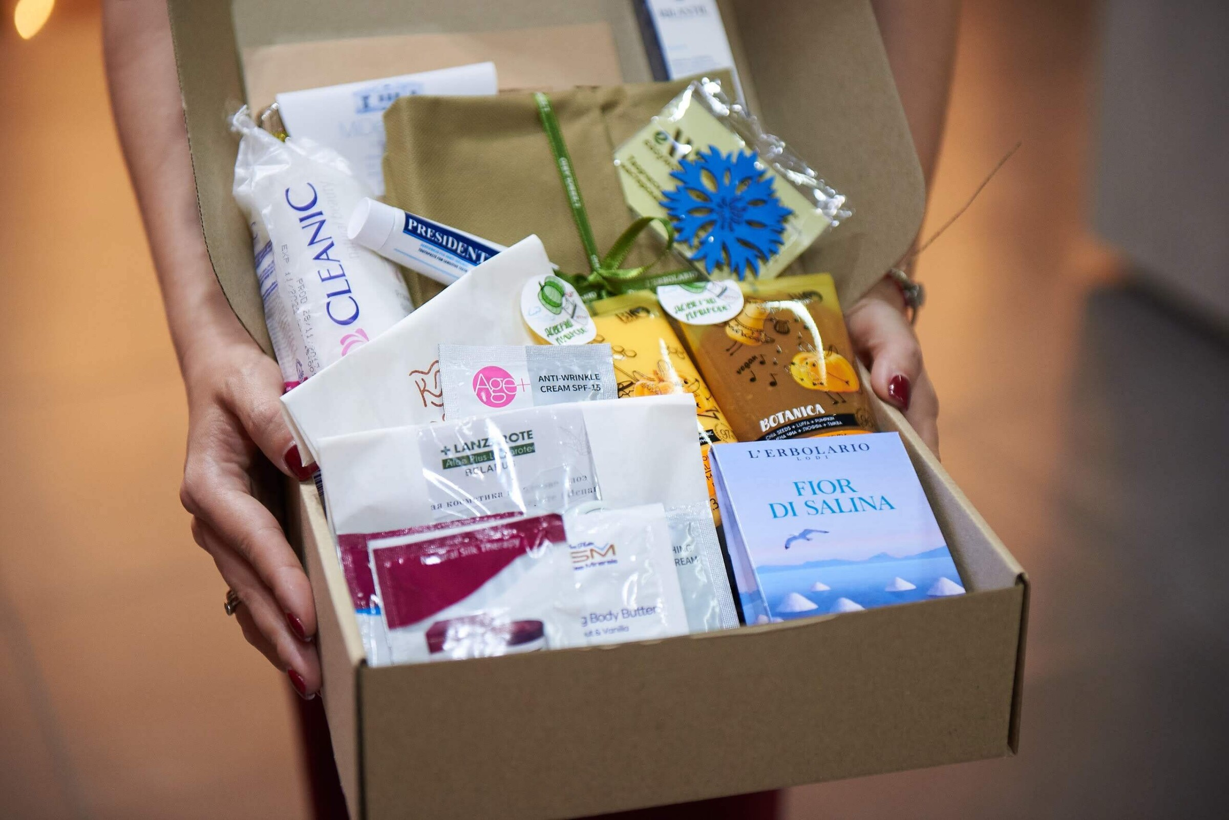 По традиции каждая участница получила полезную коробку GoodBox или MamaBox с подарками от партнеров мероприятия. В подарочных боксах можно было найти тыквенный скраб для лица, губ и декольте, а также питательную крем-маску для лица от бренда Bio World, мини-версию увлажняющего крема Rilastil Aqua Legere от интернет-аптеки kakvapteke.by, сумку-шоппер и набор саше из серии Fior di Salina от бренда L'erbolario Belarus, мини-версию мыла ручной работы от проекта “Красивое мыло”, хлопковые диски и гигиенические ватные палочки от Cleanic, зубную щётку travel-формата от стоматологической клиники «МиДент», сертификат на ультразвуковую диагностику от Клиники женского здоровья «Ева», мини-версию зубной пасты President White от интернет-магазина «Чистюля», тестовые версии косметики от бренда Aloe Plus Lanzarote, набор саше от израильского бренда косметики Mon Platin, детскую косметику от Bübchen и упаковку влажных салфеток от SENSO BABY.
