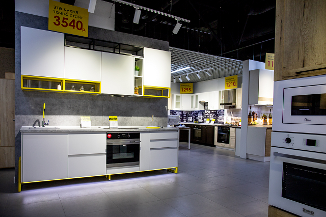 Шоурум отличает специализация на модульной мебели. Кухню или гостиную предлагают собрать, словно конструктор, чтобы подходила под конкретное помещение и стиль интерьера. Около 90% модулей находится на складе, так что до сборки и установки готовой кухни уйдет от 1 до 14 дней, тогда как в обычных салонах – около месяца.