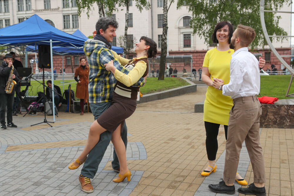 Джазовая музыка, танцевальный перформанс, картинная галерея – открытие проекта «Художник и город» прошло словно праздник, посвященный всем видам искусств. 16 мая площадь Якуба Коласа украсили гигантские цветы и золотое конфетти, а завершилось праздничное открытие экскурсией, которую провела для посетителей автор работ – Зоя Литвинова. Около двухсот человек собрались на оживленной площади, чтобы зарядиться яркими эмоциями.