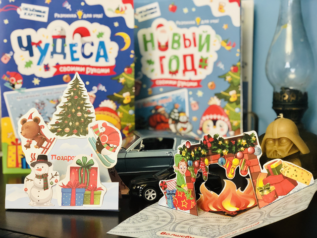 Особого внимания заслуживают «Домик Деда Мороза» и 3-D елка с раскрасками.