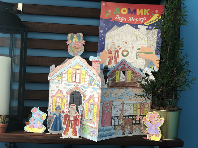 Какие секреты таятся в домике Деда Мороза? Кто помогает зимнему волшебнику? Ответы на эти и другие вопросы спрятаны на страничках игры-раскраски, которую нужно сначала ярко оживить фломастерами и красками, а потом собрать собрать 3D-домик, вырезать героев и начать волшебство!