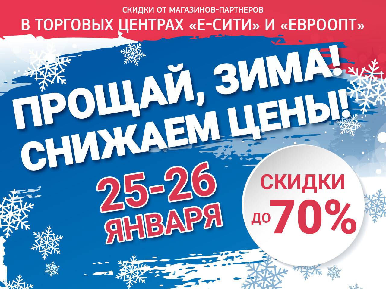25 и 26 января в торговых центрах «Евроопт» и «Е-сити» пройдет акция «Прощай, зима! Снижаем цены!».