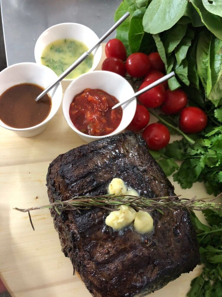 Мясной ресторан Beef&Fire («Биф энд Фаер») предлагает гостям попробовать блюдо класса люкс — говяжий стейк «Шатобриан» с тремя соусами.