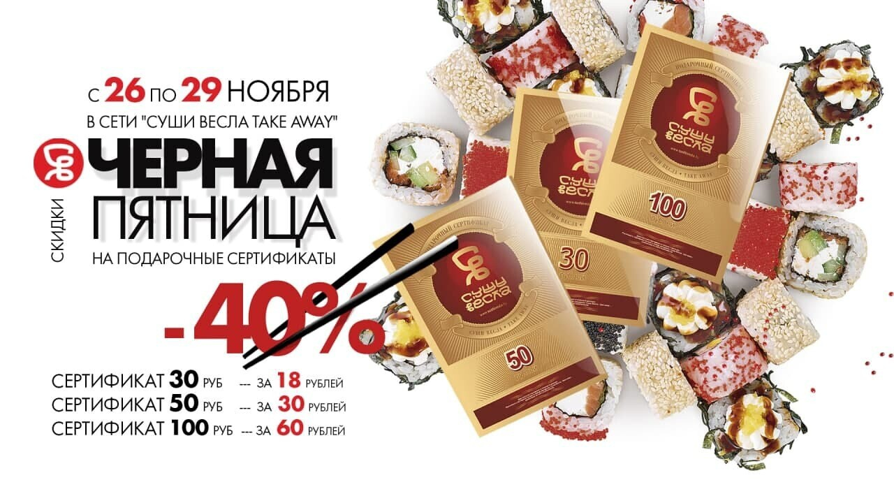 «Черная пятница» в сети «Суши Весла» — это не только пятница со скидками, но и возможность инвестиций в виде сертификатов.