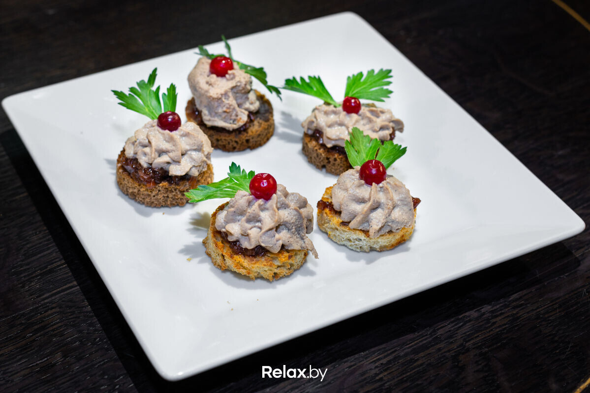 Канапе с паштетом (100/5шт) — 5 руб. (Хлеб, паштет из куриной печени, клюква)