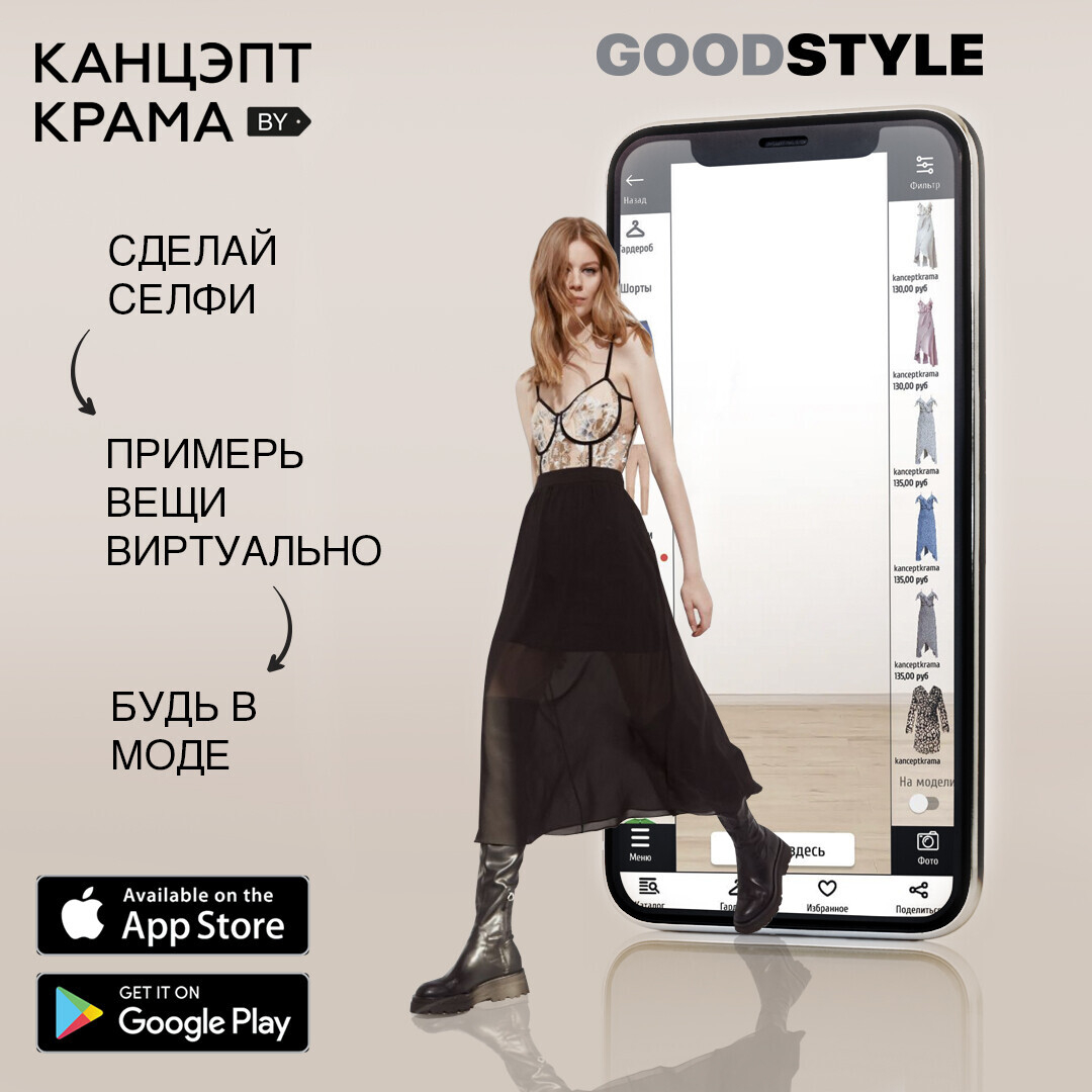 Приложение Goodstyle заработало с 15 декабря 2020 года. В нем можно примерить и приобрести одежду MURMUR, Ekaterina Volkova, Malko fashion, Zibra, Natasha Tsuran, Garsonnier, TOTALLOOK, IVAN AIPLATOV, Davidova, HISTORIA NATURALIS, My base, YOUNG&FASHION и других беларусских дизайнеров.