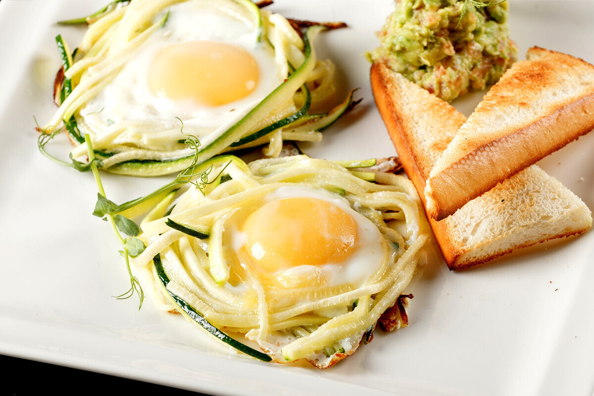По многочисленным просьбам в Terra расширили ассортимент вегетарианских блюд. Появился новый вегетарианский завтрак — овощной боул с нутом и чиабаттой. Любители овощей заказывают его так же часто, как предыдущий хит, который остался в меню, — глазунью с цукини, тостами и тартаром из авокадо и томатов.