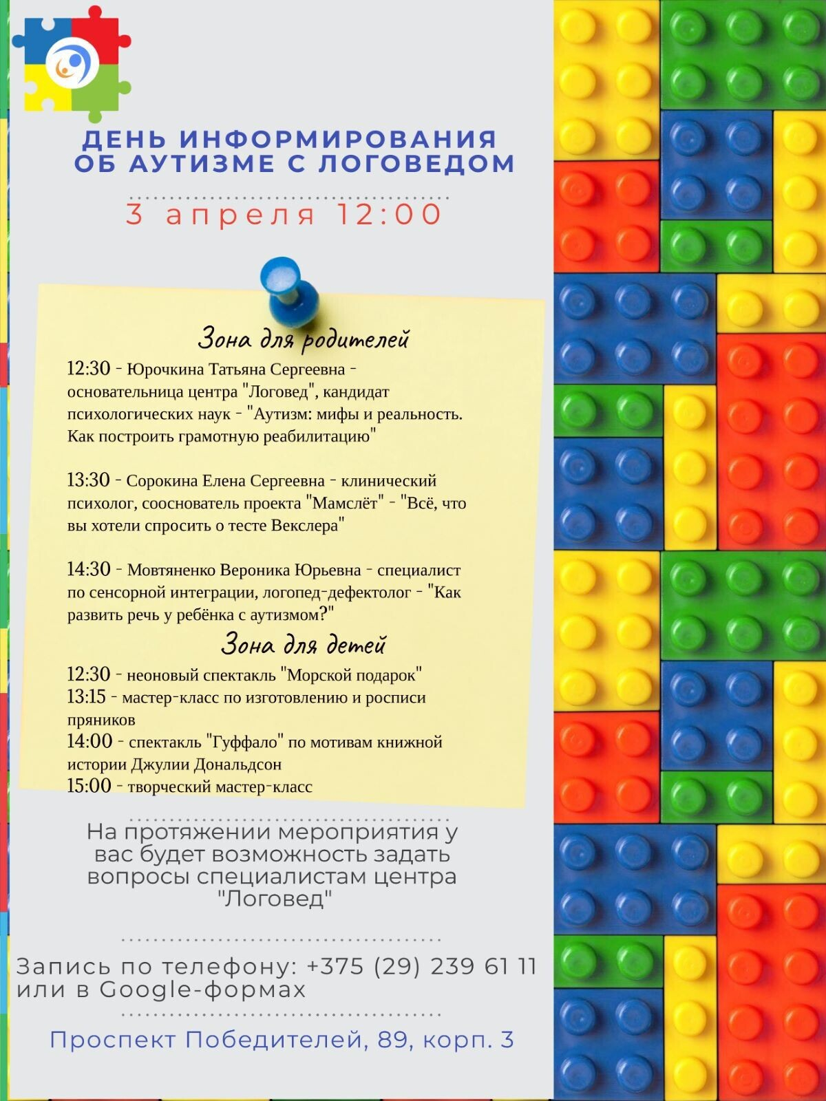 В субботу, 3 апреля, центр развития речи и коммуникативных навыков «Логовед» проведет день открытых дверей. Он посвящен Всемирному дню распространения информации об аутизме. Его цель – рассказать об аутизме и методах помощи детям и их родителям.