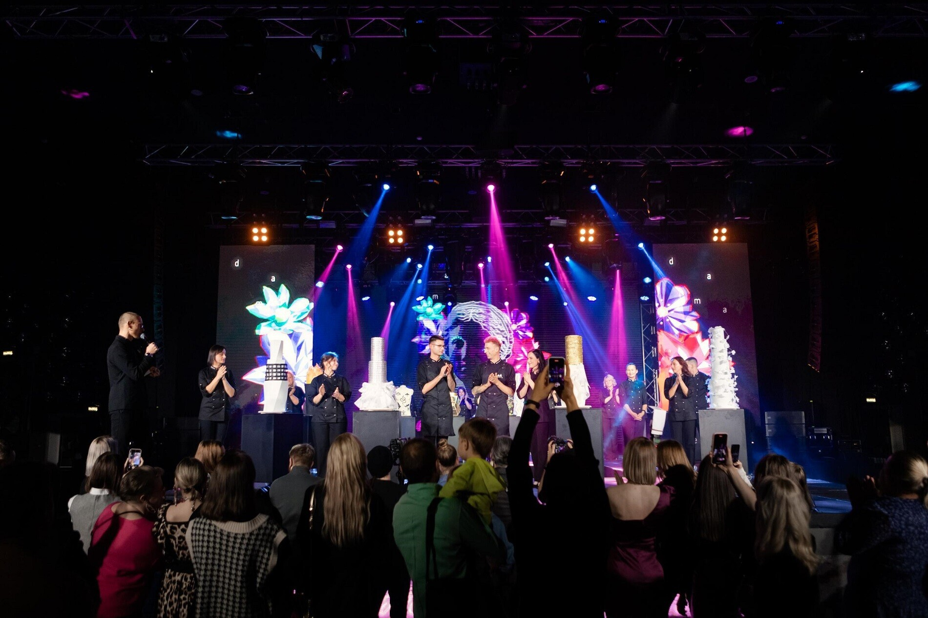 После трехдневного мастер-класса от Антона и Дениса, в котором приняли участие 18 кондитеров из разных стран, состоялся грандиозный показ тортов. Символичным было начало шоу – стартовали ровно в 20:21 в 2021 году.