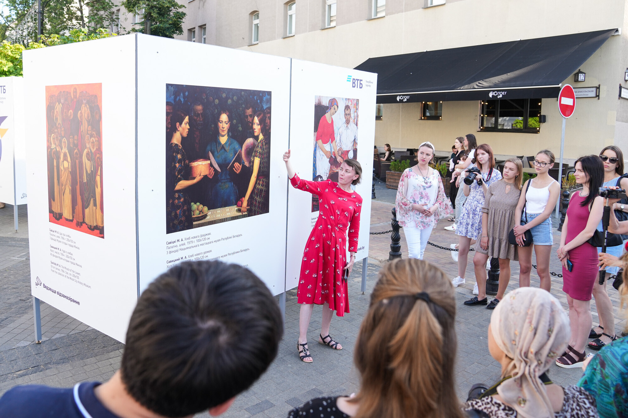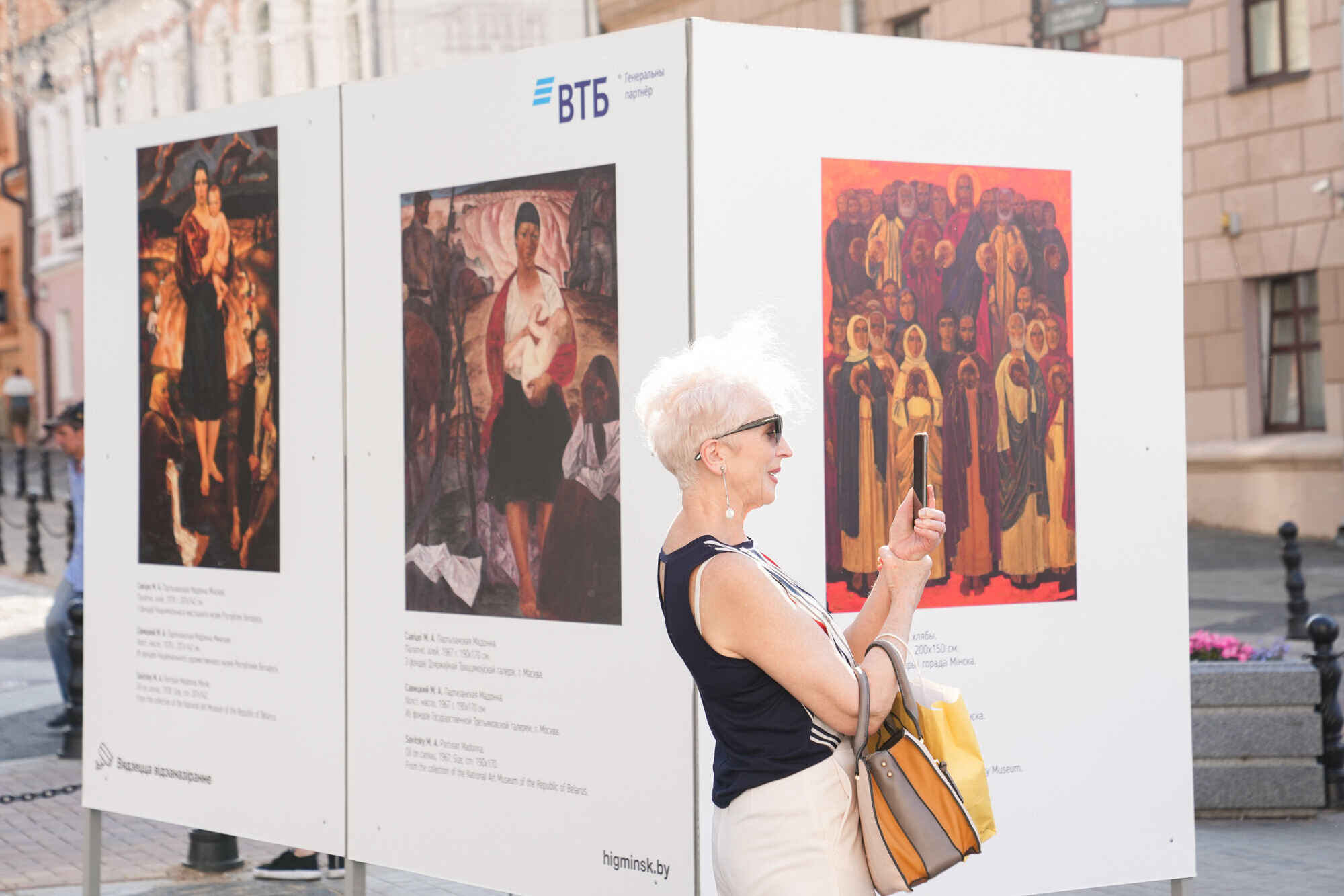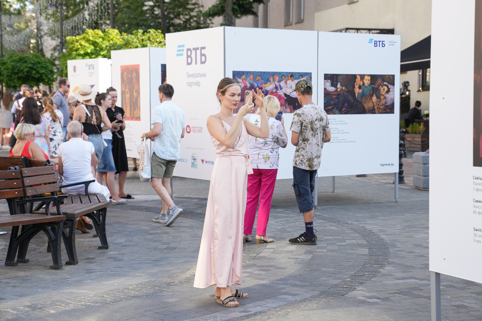 Экспозиция установлена у памятника Городским часам, посетить ее сможет любой желающий до конца сентября. Экспозиция под открытым небом создает иллюзию прогулки по музейным залам. Информация на выставочных кубах транслируется на трех языках — русском, белорусском и английском.