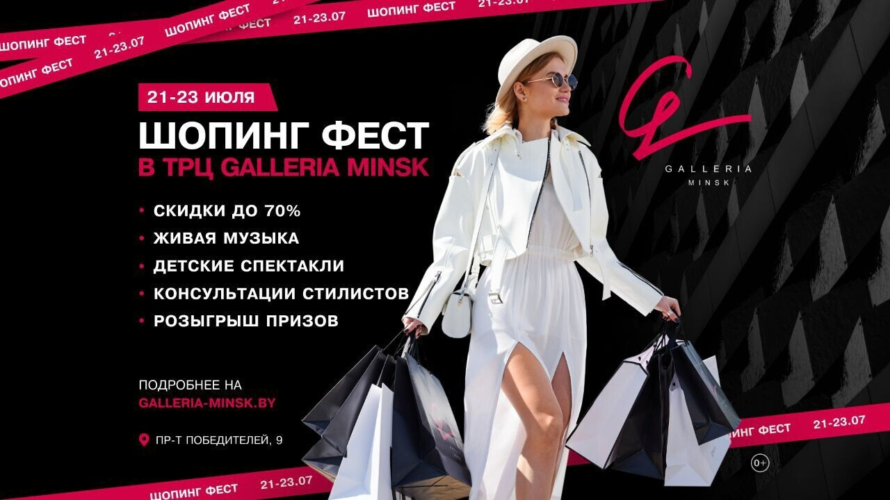 Сезон распродаж – это настоящий праздник для шопоголиков! ТРЦ Galleria Minsk решил отметить его с размахом и организовывает целый ШОПИНГ ФЕСТ! С 21 по 23 июля вас ждет выгодный шопинг, скидки в магазинах до 70%, живая музыка, детская развлекательная программа, консультации стилистов, розыгрыши призов и многое другое.