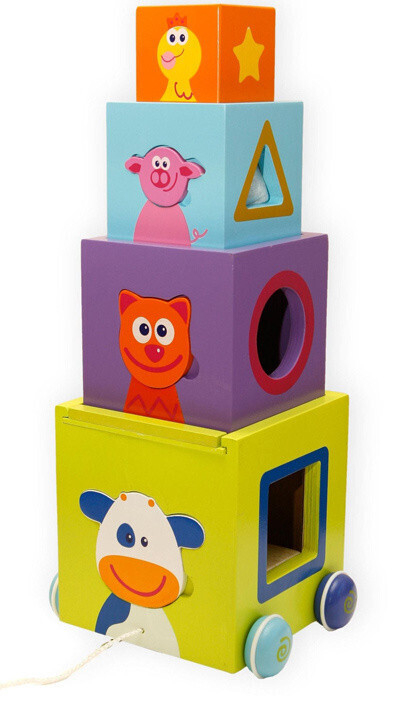«Ване досталось две развивающих игрушки: и . Сыну очень понравились игрушки, мы даже не ожидали такого внимания с его стороны. Целый вечер играли, потом сложили все в коробочки, а наутро он снова начал просить именно эти игрушки. Даже на прогулке попросил, чтобы ему дали игрушку и начал показывать свой поезд бабушке. Ваня сразу высыпает все из коробки, пытается сам собирать, но не всегда у него это получается — у деталей поезда с животными не самое простое крепление, поэтому просит помощи у меня. Сыну очень нравится показывать мне животных. Например, показывает коровку и уже издает звук, который она издает — мычит, показывает котика и говорит «мяу». В дальнейшем можно играть по цветам, пока он различает только формы, а цвета еще не знает, но когда просишь его дать кружок — дает именно его, а не треугольник.» |