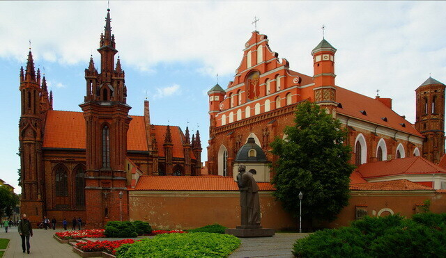 Сегодня монастырь и церковь бернардинцев является одним из самых крупных в литовской столице готических комплексов. Выглядит церковь действительно впечатляюще: вместе с костелом Святой Анны монастырь выглядит единым архитектурным ансамблем. Стоит отметить, что первую церковь из дерева здесь возвели во второй половине пятнадцатого века. Внешне собор был оформлен просто — по причине того, что выполнял роль оборонительного сооружения.Реконструкцию церковь переживает в семнадцатом веке. Именно после нее она приобретает черты, которые чаще всего свойственны архитектуре периода Возрождения. Так строгие готические линии были немного сглажены.