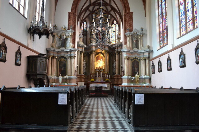 И если с виду церковь можно назвать довольно скромной, то внутри она впечатляет своим убранством. Четырнадцать уникальных алтарей украшены потрясающими фигурами из дерева. Нельзя не обратить внимание и на то, что именно здесь хранится самое старое распятие в Литве. Оно датируется четырнадцатым веком.