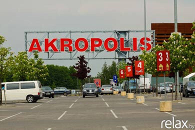 Самый большой торгово-развлекательный центр не только в Вильнюсе, но и во всей Прибалтике. Здесь можно сделать хороший шопинг и отдохнуть. Из брендов одежды в Akropolis представлены: Bershka, Esprit, Bison, Imitz, Gina Laura, Zara, City Men&Women, Franco Feruzzi, Lee, Wrangler, Cop.Copine, Camel Active, Levi’s Store, Mango, Mexx, Monton, Pierre Cardin, Promod, Pietro Filpi, Pull and Bear, Reserved, S. Oliver, Red Star, Silver Fox, Sunset Suits Men, Benetton, Vero Moda и др. Из обуви: Alikante, Bags&More, Chester, More, Charles&Keith, Crocs, Danija, Ecco, Deichmann, Divo, Geox, Elegant Line, Gino Rossi и др. В Akropolis большой выбор магазинов со спортивными и детскими товарами и товарами для отдыха. Здесь расположен строительный мегамаркет «Эрмитаж». А для отдыха можно выбрать рестораны и кафе, где представлены кухни разных стран мира, боулинг, казино, кинотеатр, салон красоты, солярий, детскую игровую площадку Europa и даже катание на коньках на ледовой арене. Помимо этого, в центре действует несколько банков, предоставляются услуги Интернет-связи, химчистки и др. В Akropolis работает супермаркет Maxima.