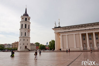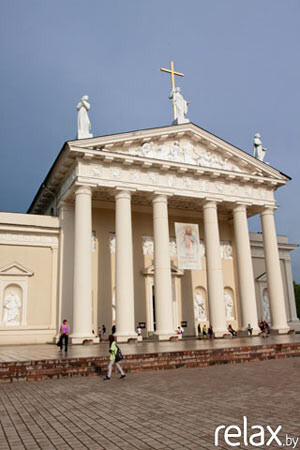 Самый главный собор Вильнюса находится напротив колокольни и по своему стилю напоминает классические храмы Древней Греции. Именно здесь отмечаются все народные, христианские и государственные праздники. Как утверждают историки, до 13 века на месте собора стоял языческий храм бога Перкунаса. А на алтаре храма постоянно горел жертвенный огонь. Первый же собор возвел в начале 13 века литовский король Миндаугас, который хотел заручиться поддержкой Ливонского ордена и принял христианство. В 1922 году Кафедральный собор получил статус Базилика, который присваивается Папой Римским костелам, относящимся к наивысшей категории храмов.