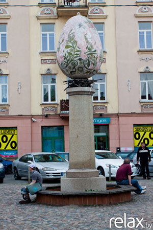 Скульптура представляет собой пестрое трехсоткилограммовое Возможно, формат этой картинки не поддерживается браузером. яйцо, поднятое на гранитную колонну. Оно символизирует возрождение старого района, дарит весеннее настроение и радует прохожих. Скульптура была открыта в 2003 году.
