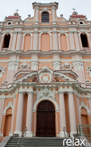Этот самый крупный в Литве костел готического стиля успел побывать и деревянной церковью, построенной монахами-бернардинцами, и частью оборонительной стены, которая окружала Вильнюс. Этим и объясняется скромное внешнее оформление собора. Об оборонительных временах здания напоминают амбразуры, сохранившиеся до наших дней на северном фасаде церкви.