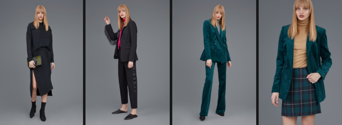 Встречать холода бренд предлагает в стильных платьях, костюмах, блузах, джемперах, в которых удачно сочетаются эксклюзивный дизайн и практичность.