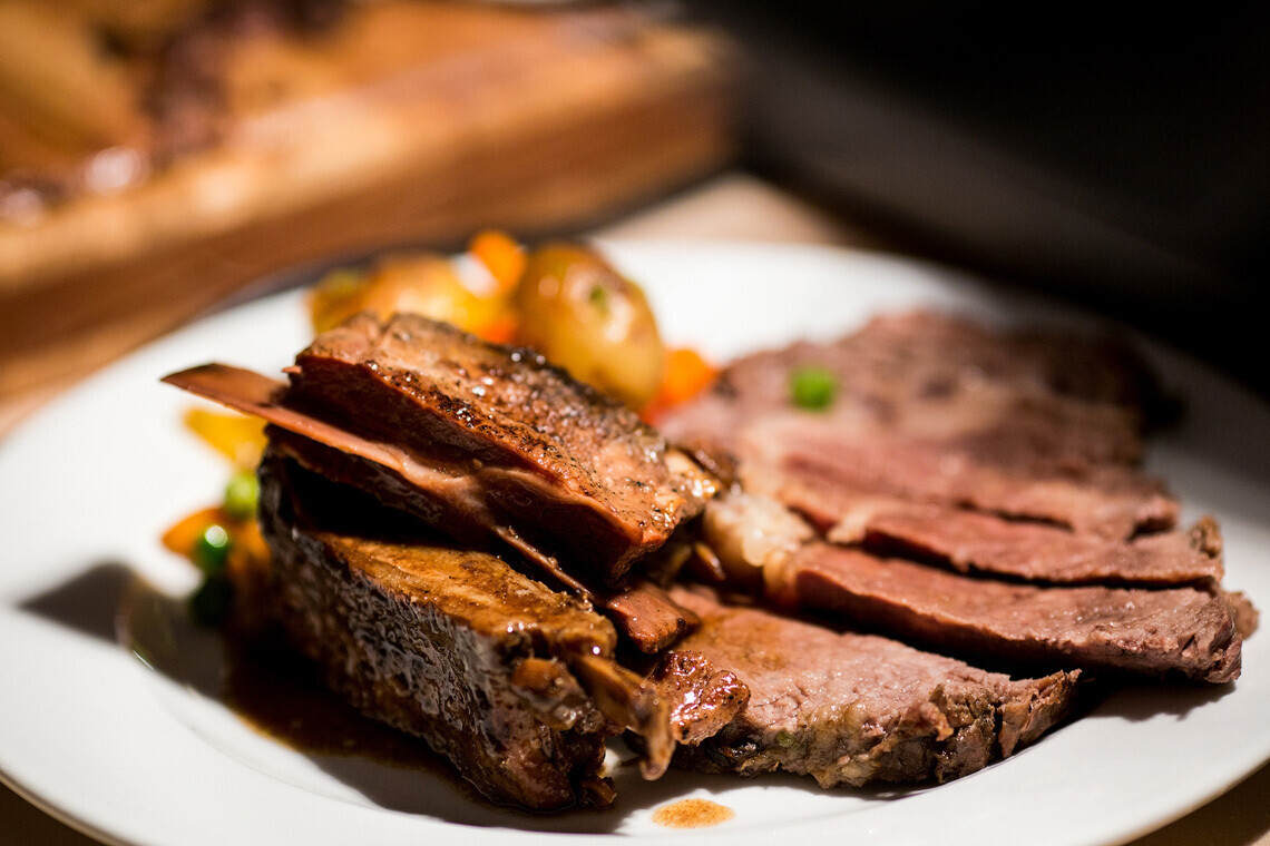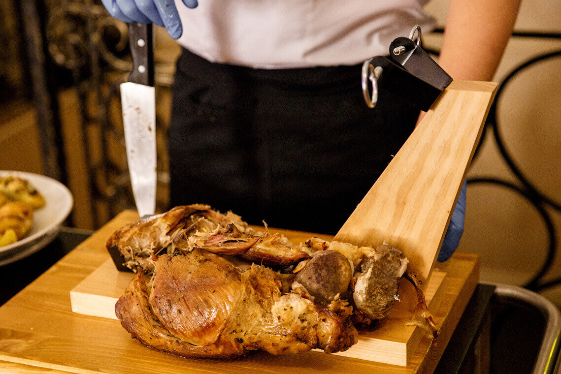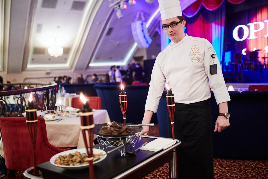 Так, в заведении оставили некоторые позиции из французского меню, сделав акцент на трендовых вещах, в числе которых — мраморное мясо. Сегодня в LOUIS XIII можно заказать классические стейки (рибай, миньон, шато) и альтернативные, которые готовятся из более активных мышц: лопатки, поясничной части, внутренней части диафрагмы. Помимо этого, в буфете казино «Опера», которое находится на первом этаже здания, имеются позиции восточной и белорусской кухонь.