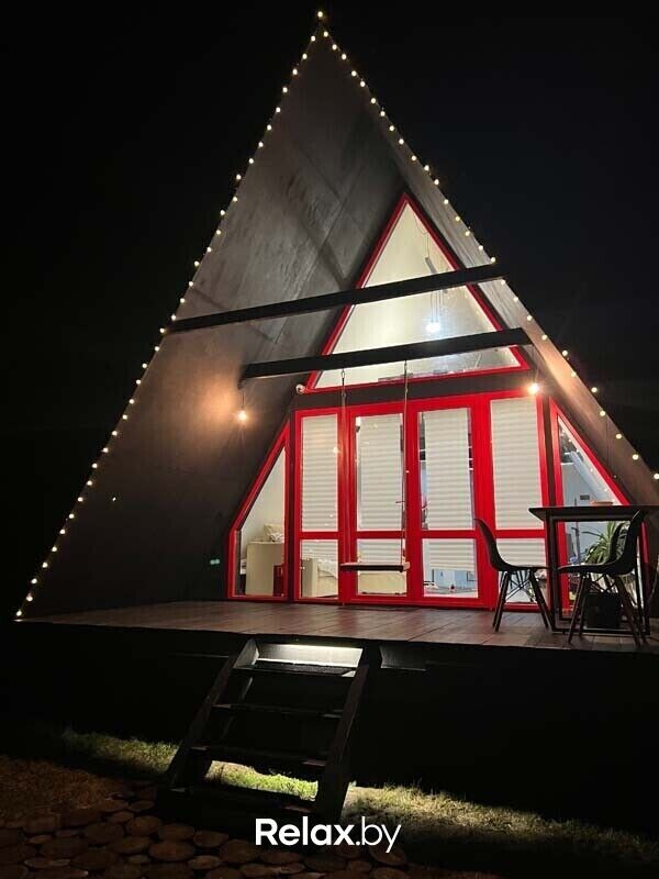 Hutorsgomel (ХуторсГомель) представляет собой небольшой дом с террасой в стиле a-frame (треугольный дом) расположенный в уединенном месте на берегу Днепра. Уютный уголок природы призван предоставить гостям возможность побыть наедине с собой или провести время с близкими, отдохнув от городской суеты и шума.