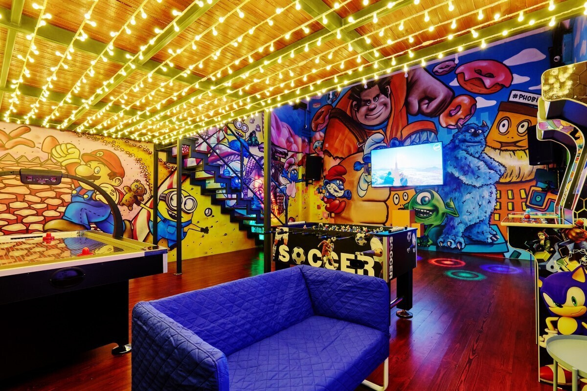 Устройте караоке-баттл, испытайте силы в аркадных игровых автоматах, сыграйте в аэрохоккей или кикер. Огромные экраны подойдут и для игры в приставку, и для просмотра любимых фильмов. А мощная акустика создаст эффект полного погружения в сюжет.