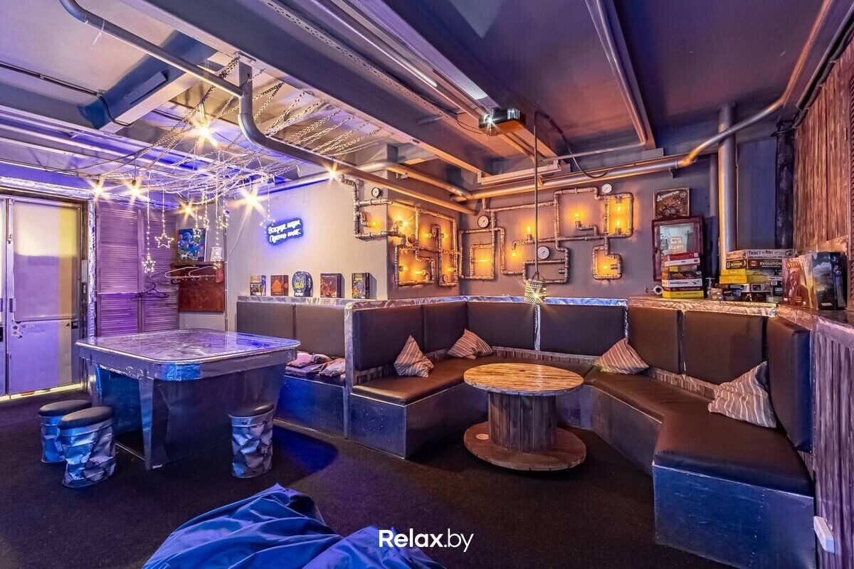 Пространство включает несколько игровых залов, рассчитанных на различное количество гостей, два квеста, а также лаунж-зоны для отдыха с кофемашиной, СВЧ и холодильником.