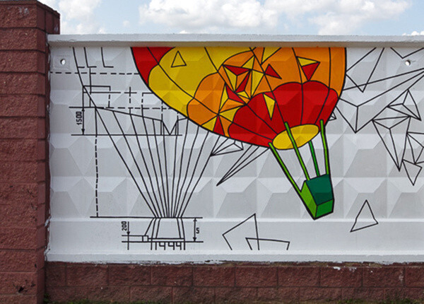 На некогда безликом бетонном ограждении появилось больше 12 рисунков, каждый из которых посвящен какому-либо транспортному средству.