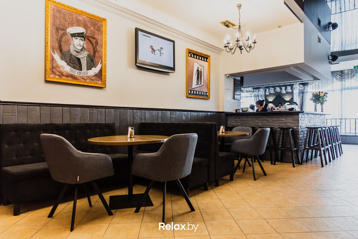 Интерьер каждой зоны имеет особый колорит с европейским акцентом в стиле «хайтек». Место рассчитано на 150 гостей, которым всегда рада команда обслуживающего персонала. В меню заведения представлены блюда европейской и белорусской кухни.