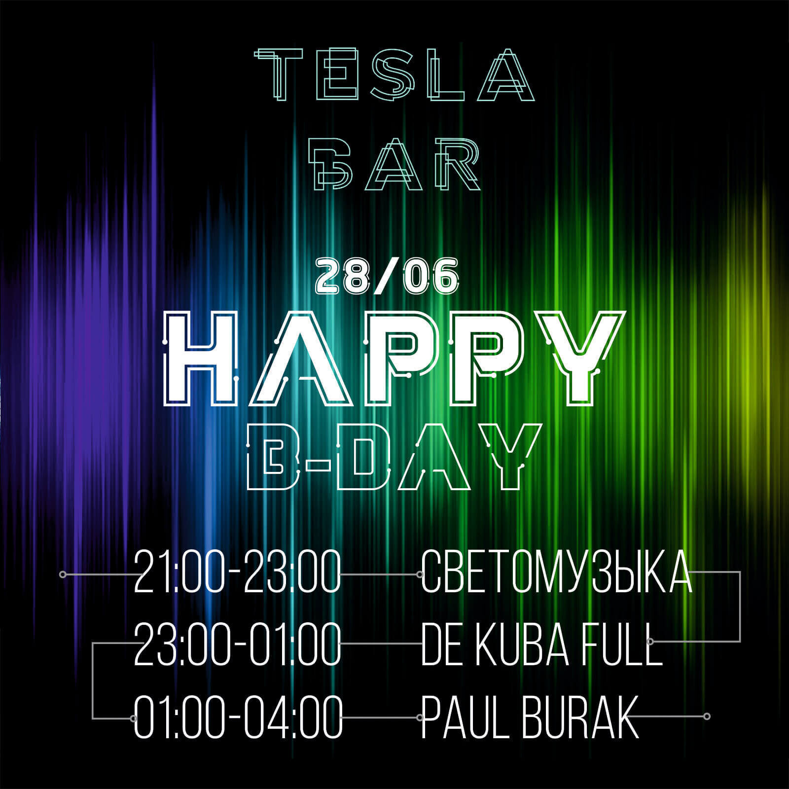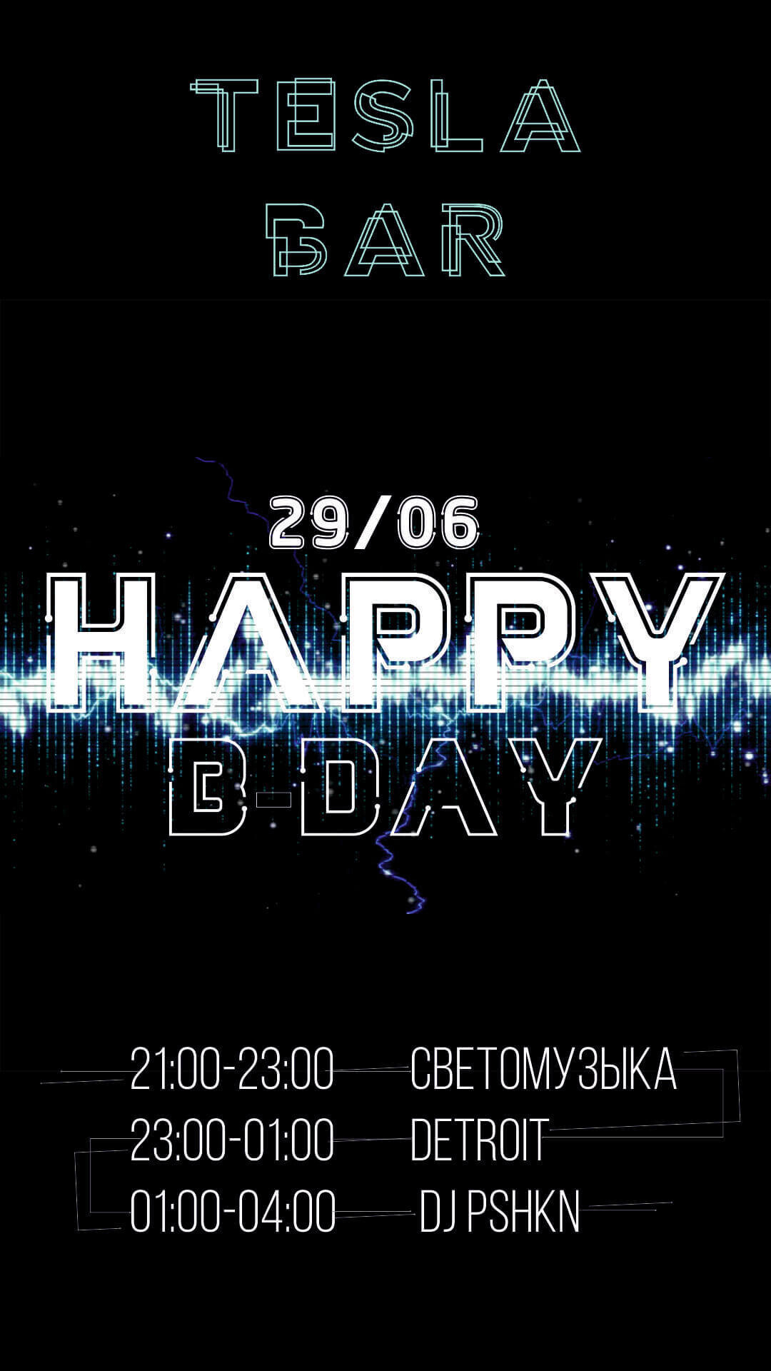 В предстоящие выходные, 28 и 29 июня, Tesla bar отметит свой первый день рождения вечеринкой до утра.