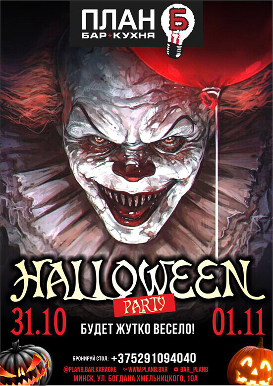 Так же не забываем о предстоящих праздниках! И первый в календаре Plan B — это Хэллоуин. 31 октября и 1 декабря здесь будет организована костюмированная вечеринка с соответствующей атрибутикой, зажигательной караоке программой, и угощениями для гостей.